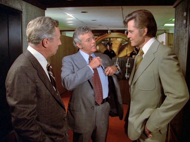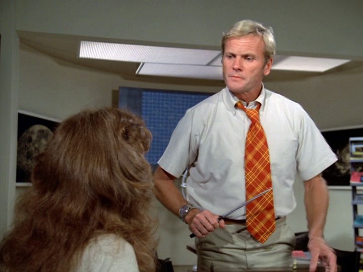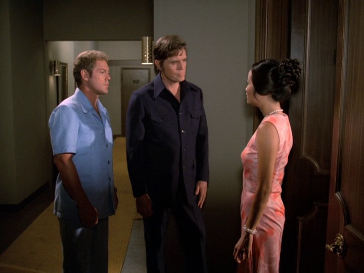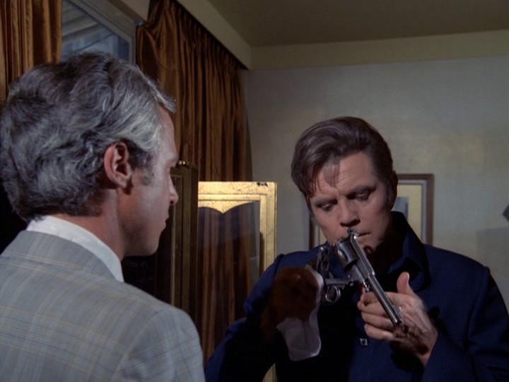 This is by far the worst season opener — an unbelievably boring episode with uninspired direction by Barry Crane, a mediocre script by John Melson and indifferent acting, plus a very dull score by John Cacavas which uses a clangy, overamplified harpsichord and where the banal music often has no connection to what is happening on screen.