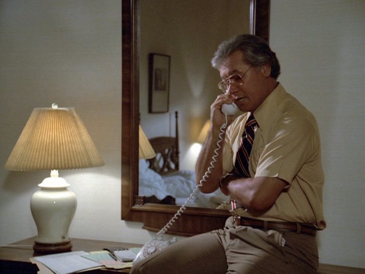 There are already issues at the beginning of the show. A 23-year-old woman on a flight from Singapore to Honolulu dies, poisoned by heroin, after a plastic envelope in her stomach containing the drug bursts open. Right off the bat, I wanted to know if this was realistic, and a lengthy search at Wikipedia says probably not, at least having her croak almost immediately as in the show. (If you have knowledge to the contrary, please let me know.) The medical examiner dealing with this is Doc Bergman, played by Al Eben, who has returned, uncredited, almost two and a half years since S09E05, "Tour De Force, Killer Aboard," where he was identified by his name and about six months since S11E04, "The Case Against Philip Christie," where he was just "Coroner." Doc says the woman died of "massive pulmonary arrest … she never knew what hit her."