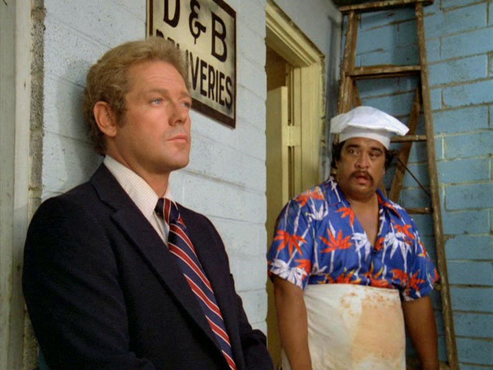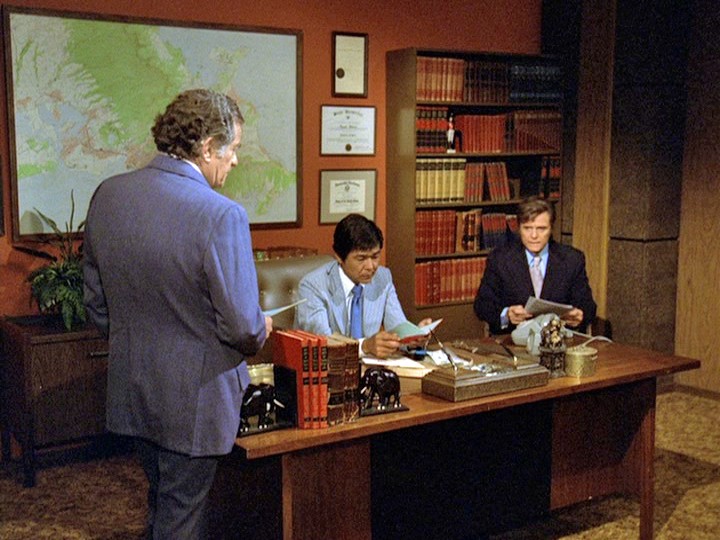 But, along with the lame attempts to set up Rathman as an "absent-minded professor," this is just yet another stupidity in an episode which is totally mediocre from beginning to end, including the last scene between Rathman and McGarrett which is cutesy-poo in a nauseating manner highly reminiscent of the endings of Streets of San Francisco episodes.