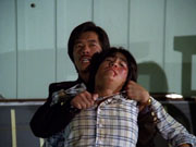 Sandover is killing two birds with one stone, because aside from escaping, he goes to the ramshackle room where a Mr. Ho (Thomas Lee), a elderly blind dope addict from Hong Kong who is an expert on heroin, has been hiding out. The two of them get on a speedboat which has been waiting for them outside and beat it to some ramshackle freighter where the heroin is being cooked. Mr. Ho tries it out and is brought back to shore where he tells its potential buyer over a pay phone: "Very strong surge on the needle. Good peak. Very fine finish. Small even crystal. Take the cut well. Appears stable. No condensation or granulation. I sampled three out of the 20 kilos."