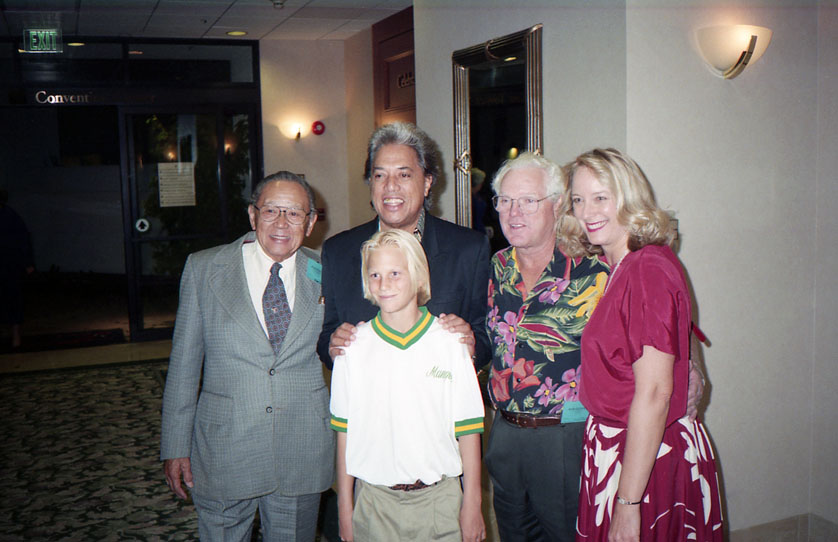 ▩ Kam Fong, Zoulou and James MacArthur with his wife and son outside the banquet room in Burbank.