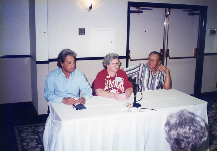 ▩ Zoulou, Karen Rhodes (boss of the Iolani Palace Irregulars) and Kam Fong during a Burbank panel discussion.