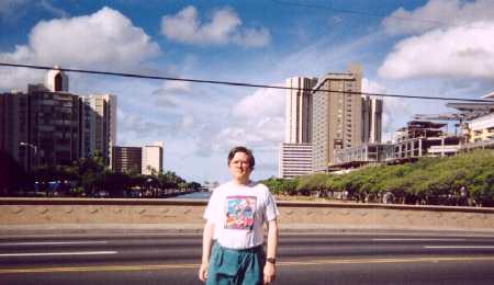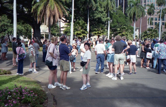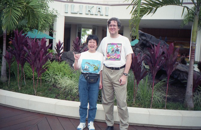 ▩ Doing the tourist thing in the courtyard of the Ilikai Hotel (where we stayed in Honolulu).