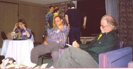 ▩ Zoulou and James MacArthur answer fans' questions in the Burbank "exhibit" room. Note the picture of Jack Lord on the extreme right.