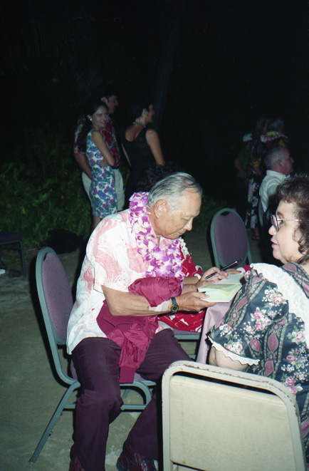 ▩ Tommy Fujiwara at the luau. Photo by Jerry Pickard.