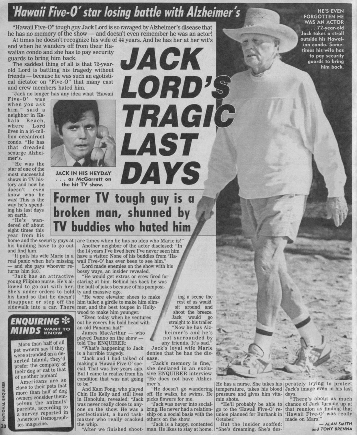 "Jack no longer has any idea what 'Hawaii Five-O' was when you ask him," said a neighbor in Kahala Beach, where Lord lives in a $7-million oceanfront condo. "He has that dreaded scourge Alzheimer's.