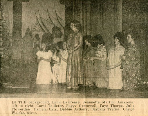 The following comes from The Gazette of Wednesday, March 30, 1966. There was a full page devoted to the production of “The King and I,” with numerous pictures, but the quality of the printing on this page was mediocre (a sample is below). Even my own comments were hard to read.With the production of “The King and I” at MRSS, it was obvious that a dramatic occasion had turned into a dramatic event. The community had been waiting for a successor to “Pygmalion,” which started what soon may be a tradition. These expectations were realized with our school’s most recent production.