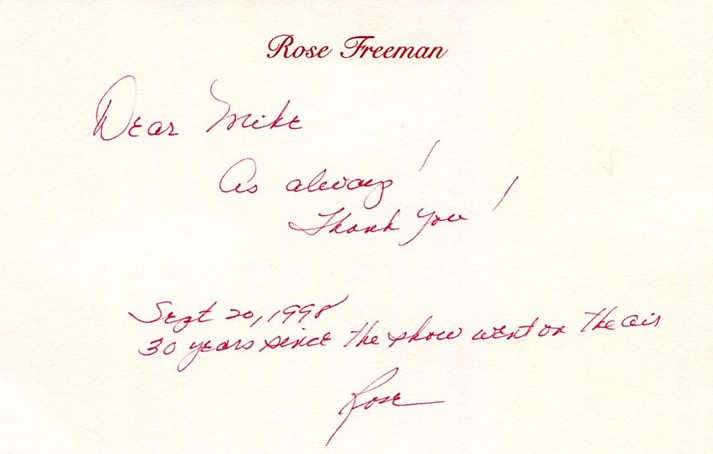 -- The late Mrs. Rose Freeman, whose husband Leonard created Hawaii Five-O