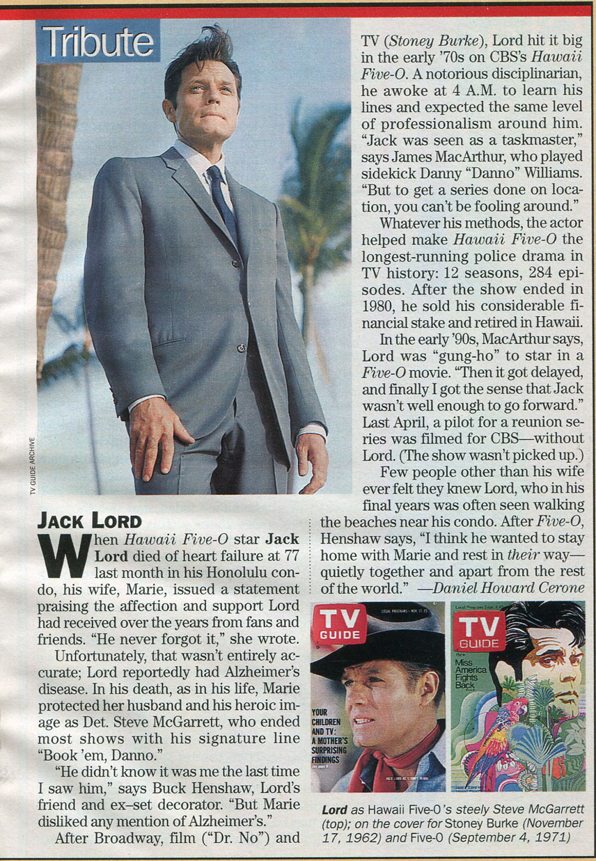 "I'm pleased to say that no Internet site has ever frightened me more than yours. Congratulations. When I found yours, especially the episode by episode breakdown, allowing me to look up my particular favorite – the bubonic plague hits Five-O – I knew the Internet had gone out of control." – a visitor
