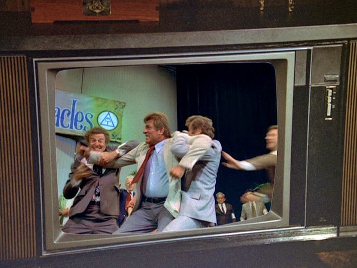 But McGarrett, who has boned up on astrology by reading some books that Agnes lent him, says, "No, you're wrong, Burgess. You're wrong. The planet Mercury is retrograde. You know that means your current plans cannot be fulfilled. And the Moon has just entered your birth sign, Scorpio. [This is so stupid.] I'll prove it to you. It's all over, Burgess. Look up. Look. Look into the stars. Release the lady and turn your weapon over to the officer. Do it now." And Mel surrenders immediately! McGarrett says, "Okay, Danno. Book him."