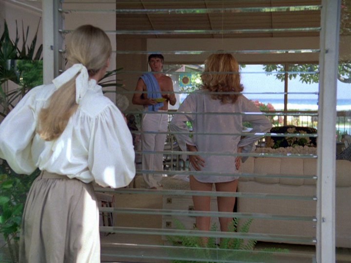 The show begins with people waiting for an elevator at the Hawaiian Regent Hotel. Typically when an elevator is seen on the show like this, something horrible will soon happen, and it does indeed. After people exit from the elevator, a man is seen leaning up against its wall and he slumps to the floor dead. A woman screams, though it is not a glass-shattering scream like some we have heard in the past. Interestingly, we do not see the person who killed him leaving the elevator, whose identity we learn later.