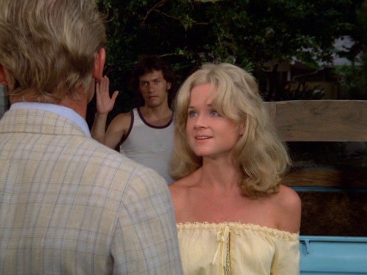 When asked to provide an alibi for the time of Rick's death, Cindy tells them, "Rick needed a job, so I went to an old boyfriend who agreed to hire him. [If this is Mel, this is wrong; she wanted Mel to find Rick a job, not give him one.] Then the more Rick thought about it, the more jealous he became. Finally, he accused me of sleeping with Mel Burgess just to get the favor … Rick had a very explosive temper sometimes. I left and went dancing. I spent the night with a man I met at a disco." McGarrett says "Busy, aren't you?" (Shame, he is accusing her of being a slut!), then "We'll need his name." Cindy says, "I don't know his name."