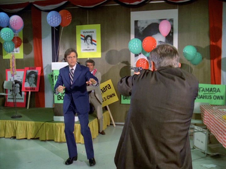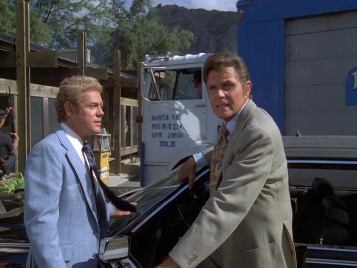 But, along with the lame attempts to set up Rathman as an "absent-minded professor," this is just yet another stupidity in an episode which is totally mediocre from beginning to end, including the last scene between Rathman and McGarrett which is cutesy-poo in a nauseating manner highly reminiscent of the endings of Streets of San Francisco episodes.