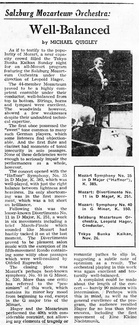 Salzburg Mozarteum Orchestra, cond. Leopold Hager (Nov. 26, 1972)