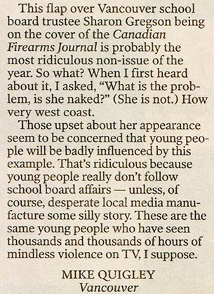 School Board trustee appears in Canadian Firearms Journal.
