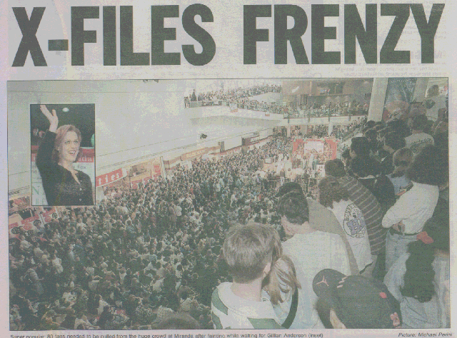 Gillian Anderson greets mob of fans in Sydney, Australia (from Aussie newspaper)